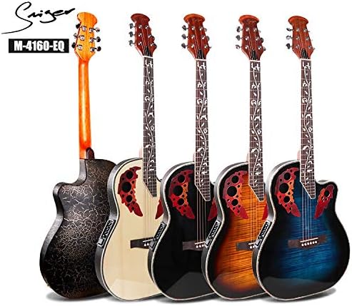 A 41-inch dreadnought electro-acoustic guitar with a cutaway body for easy access to higher frets. It features a built-in preamp and pickup system for plugging into amplifiers or PA systems. Perfect for performing musicians.