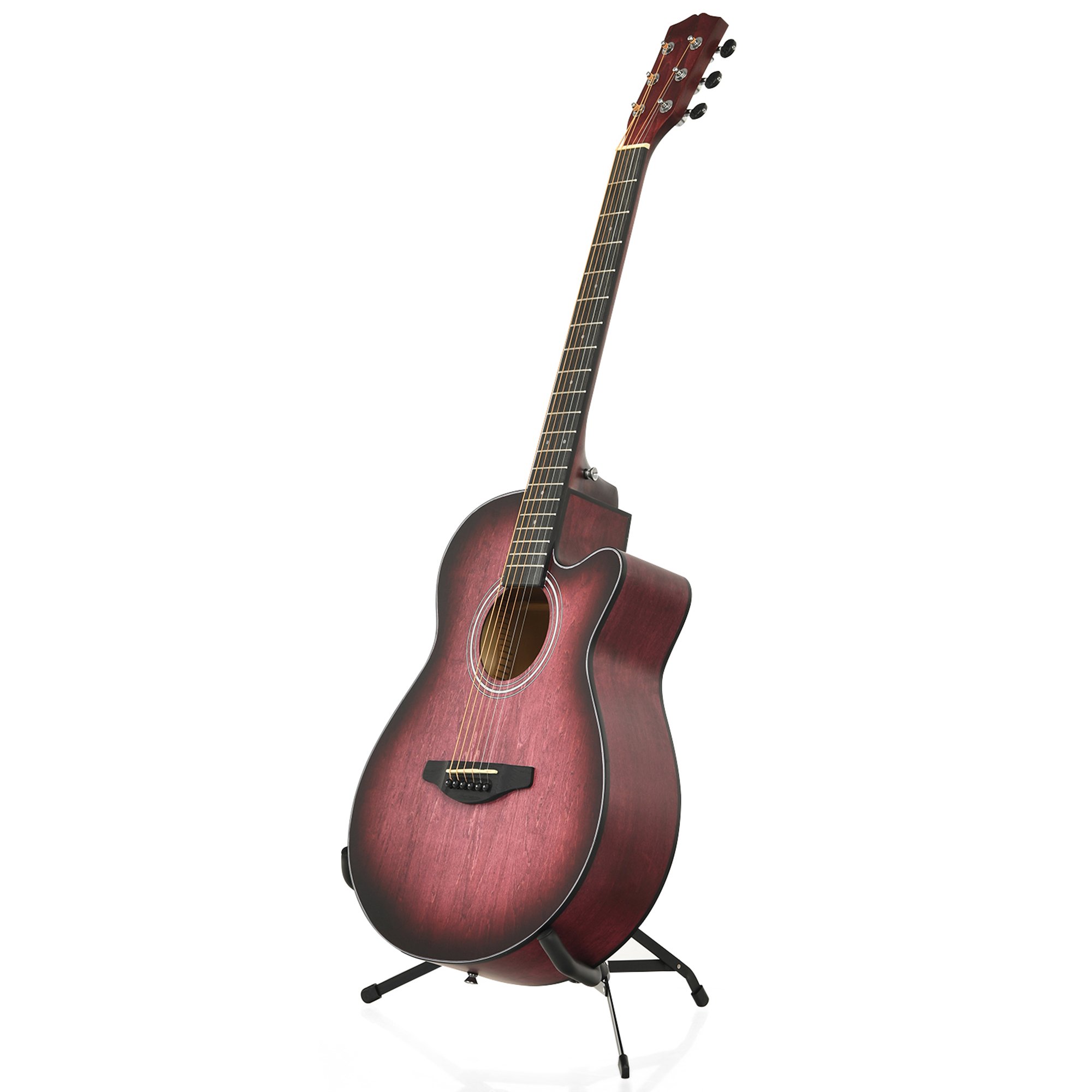 A full-sized 40-inch acoustic guitar offering a balanced tone and comfortable body shape. It is suitable for adult beginners and hobbyists looking for a reliable practice instrument. Features classic styling and durable construction.