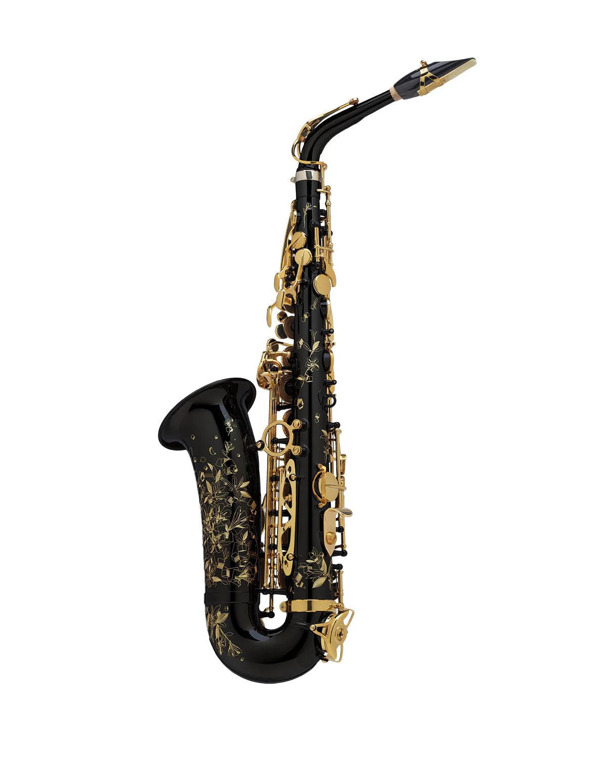 A striking black-finished alto saxophone that offers a modern look and a rich, deep tone. It is built for students and hobbyists who require a reliable and visually unique instrument. Features responsive key action for easy learning.