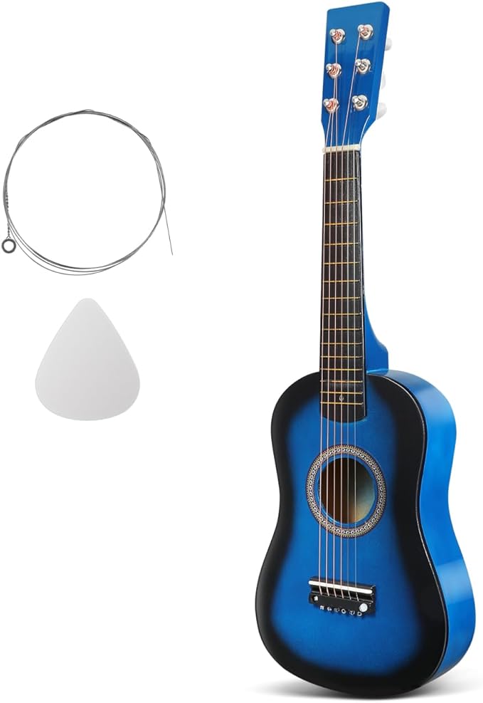 A small-body 23-inch acoustic guitar specifically sized for very young children or as a portable travel instrument. It features steel strings and a lightweight body for easy handling. A great introduction to music for kids.