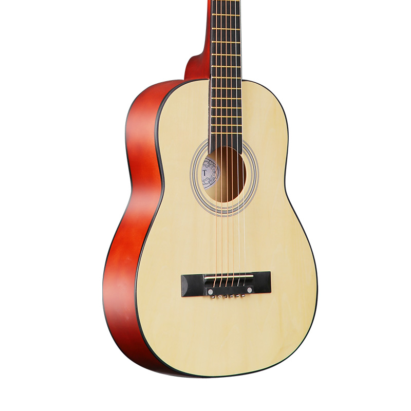 A 1/2 size acoustic guitar (34 inches) designed for primary school students. It provides a comfortable size for children to learn proper posture and technique. Built to be durable and affordable for beginners.