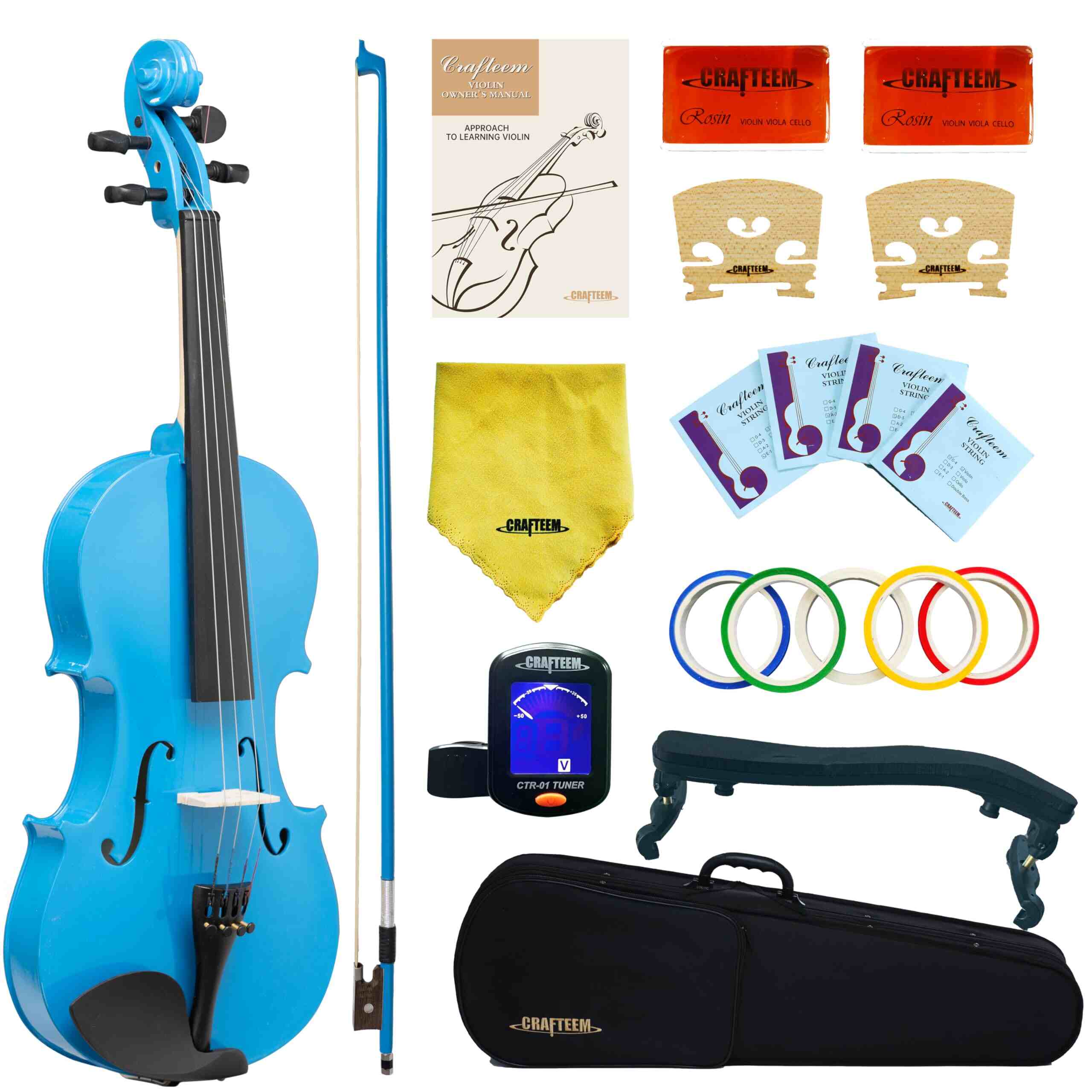 A 1/2 size violin available in a unique white or colored finish, perfect for younger students. It combines a fun aesthetic with standard violin dimensions and mechanics. A complete outfit that encourages children to practice.